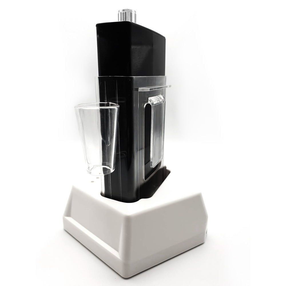 The stable charging station, whose base is made of hard plastic, offers 6 storage spaces for your bits. The battery is charged automatically as soon as the mobile milling machine is in the station. Once fully charged, the device automatically switches to standby mode.