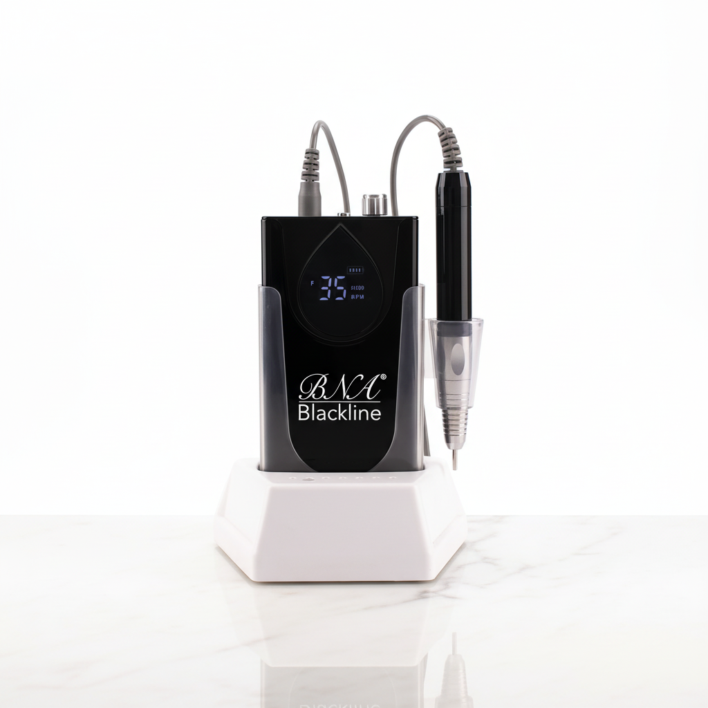 The BNA Blackline Performance cordless milling machine is a professional milling machine with an output of 85 watts . Thanks to battery operation, it can be used at home, in the studio or on the go. The high-quality housing of the cordless milling cutter is made of robust aluminum and can be worn in the charging station, the base at the workplace, or on the waistband using the included belt clip.