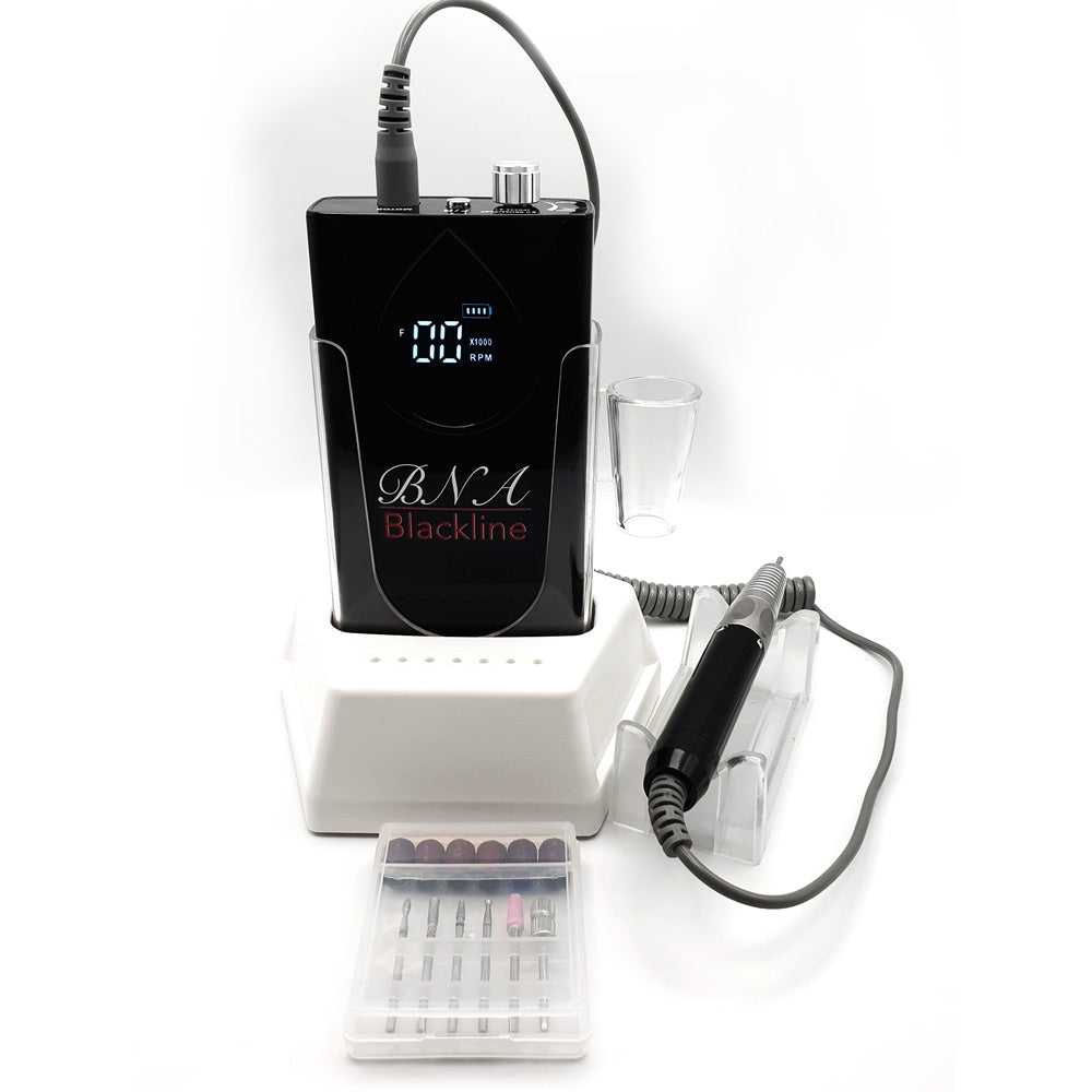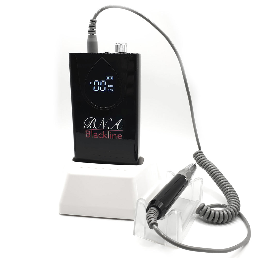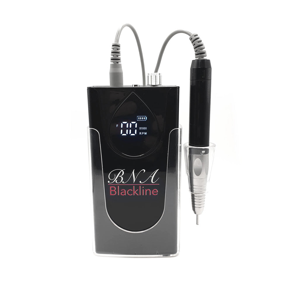 The BNA Blackline Performance cordless milling machine is a professional milling machine with an output of 85 watts. Thanks to battery operation, it can be used at home, in the studio or on the go. The high-quality housing of the cordless milling cutter is made of robust aluminum and can be worn in the charging station, the base at the workplace, or on the waistband using the included belt clip.