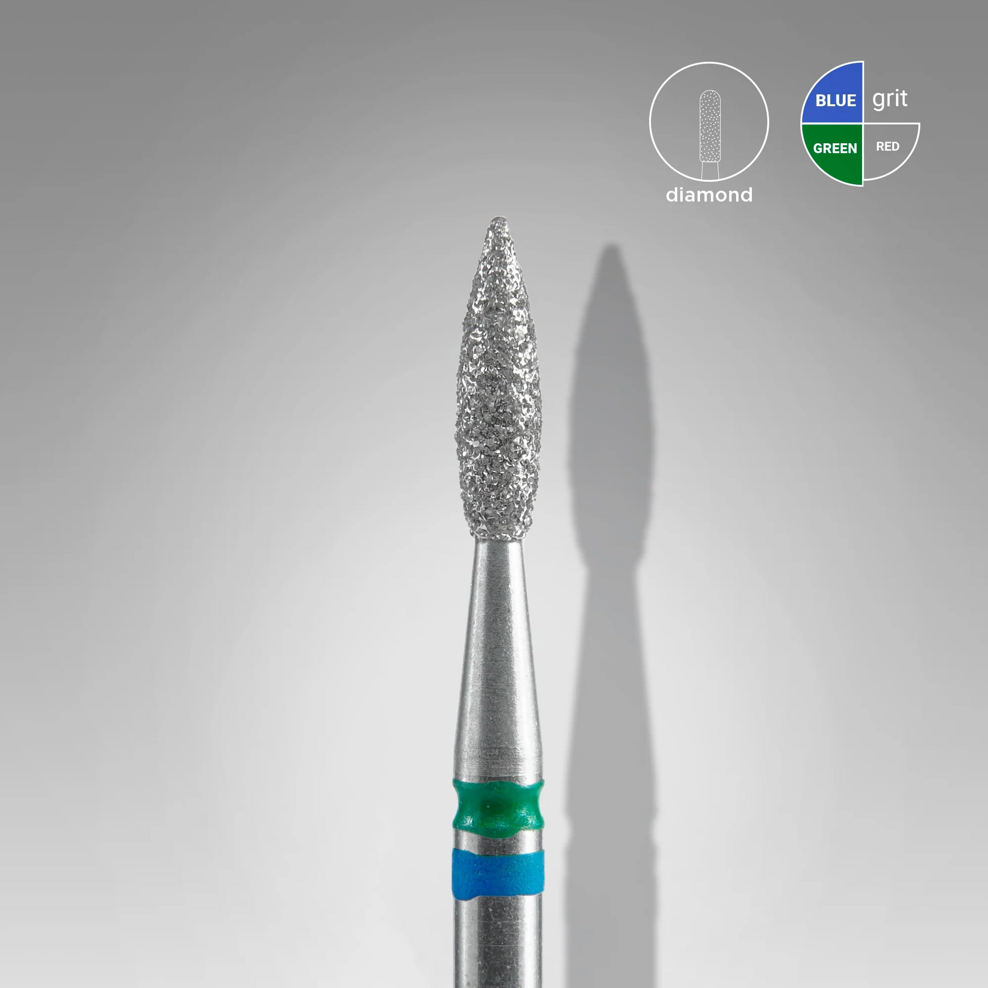 Die Flammenform ermöglicht das präzise Bearbeiten von Nagelhaut, seitlichen Nagelfalzen und Ablösungen, ohne die Haut zu verletzen. Die doppelte Diamantbeschichtung sorgt für eine lange Lebensdauer.