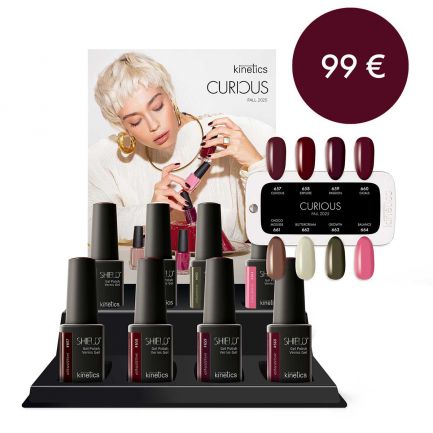 Das Kit enthält das Display, alle 8 Farben der Kollektion, die Farbkarte und das Lookbook. Alle Farben sind in einer HEMA-freien Formel für maximalen Komfort erhältlich.